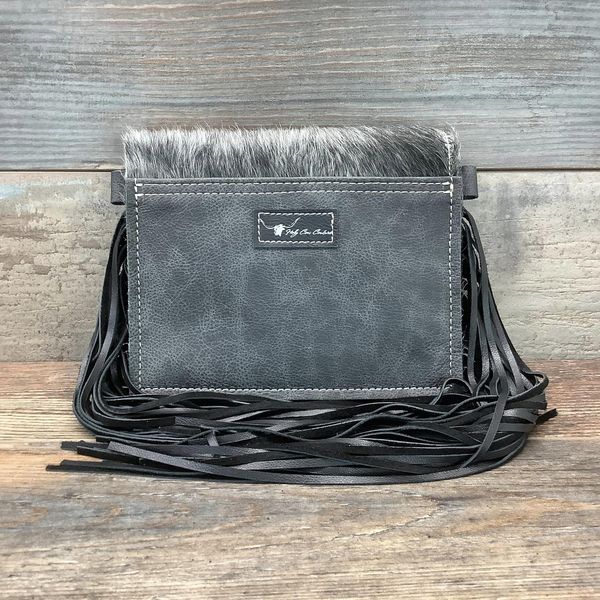This handy crossbody is compact and functional for everyday use with style! One of our most popular small bags, we have reinvented it to be sturdy and compact so that you can have your things secure! It is designed with three pouches on the interior, the center pouch has a zipper closure to keep things secure, the back of this bag has an open sleeve pocket, perfect for your phone or our Card Holders! The leather flab has a clasp that will keep your things safe even if you stuff it full!  The crossbody strap is 1" wide made with matching leather.  We use premium quality leather and hair on hide on all our bags.