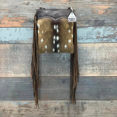 We offer a dazzling selection of crossbody bags with a long strap, so you can wear it across your body. Versatile enough for any occasion, they are the perfect style for city shopping because they are designed to keep your essentials close by. The Sling Shot is our rodeo chic interpretation of the classic messenger bag, slung across your chest and fitting perfectly at your hip for ease and comfort. All the bags in the Sling Shot collection have a convenient zippered closure for easy access, a removable strap and an interior pocket. Fringed and furry, it will make the pony express wish they had one.