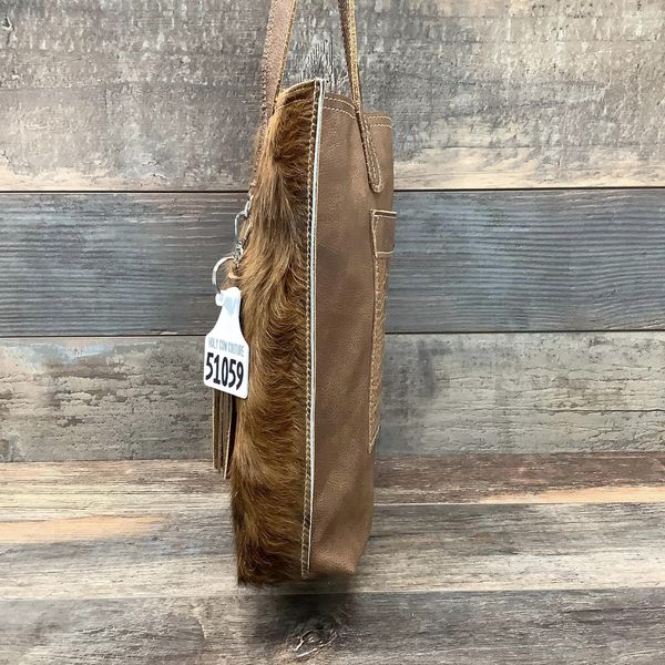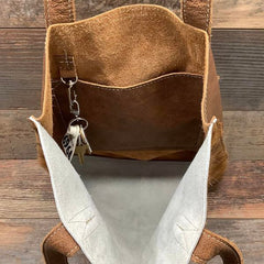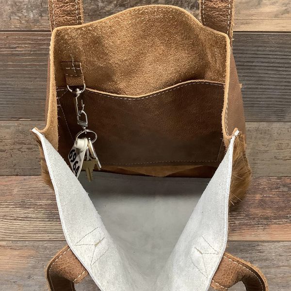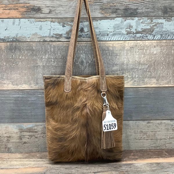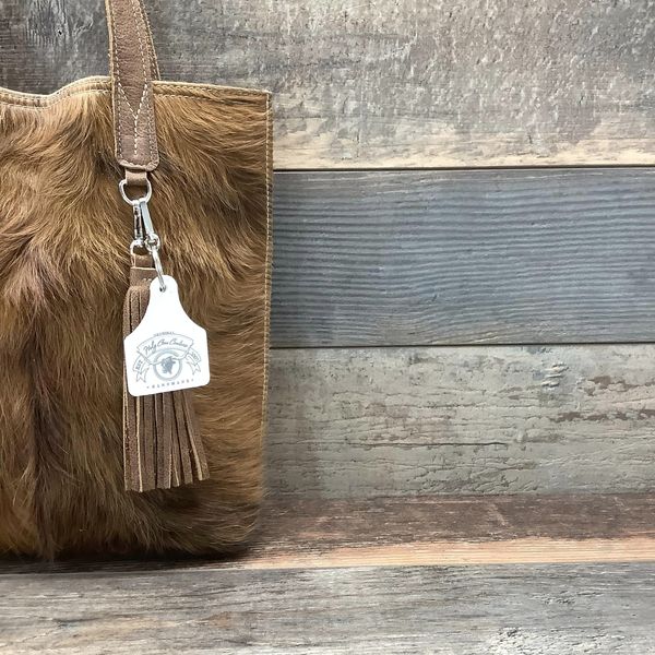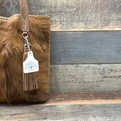 This stunning and versatile tote bag is a must-have for weekend getaways and extended shopping trips, a sister to The Weekender, just a little taller. Large enough to fit all your essentials and then some, this hair-on hide bag is soft-sided and lightweight, perfect to throw over your shoulder to keep your hands free. Its interior and exterior pockets and interior clip keep your belongings safe and secure. Each bag in the collection is finished with beauty, the leather handles that are tapered at the top for comfort, and a delightful leather tassel to complete the cowgirl chic look.