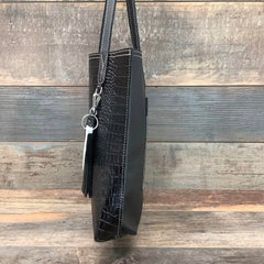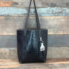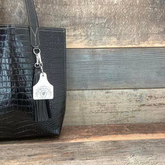 This stunning and versatile tote bag is a must-have for weekend getaways and extended shopping trips, a sister to The Weekender, just a little taller. Large enough to fit all your essentials and then some, this hair-on hide bag is soft-sided and lightweight, perfect to throw over your shoulder to keep your hands free. Its interior and exterior pockets and interior clip keep your belongings safe and secure. Each bag in the collection is finished with beauty, the leather handles that are tapered at the top for comfort, and a delightful leather tassel to complete the cowgirl chic look.
