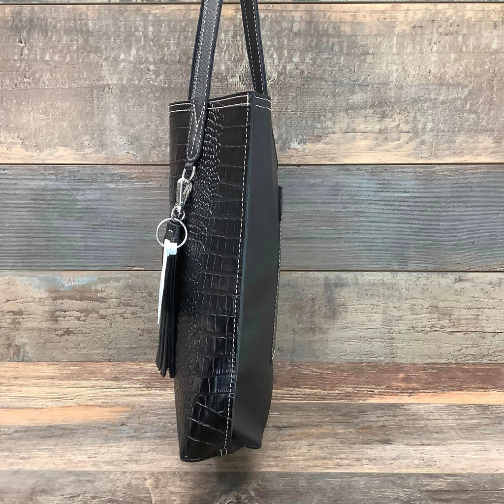 My hubby bought me this bag as soon as I saw it I knew I had to have it I love the Longhorn pattern on this leather it’s a great fun bag very well-made I think everyone needs to have a tote. This size is perfect for everyday. Will continue to purchase beautiful bags and accessories. Have referred friends and family and strangers who stop me and ask me where I got my bag😁