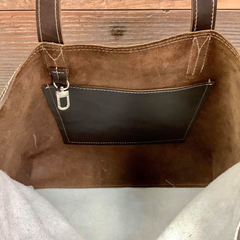 Meet the bag that’s ready for those trips to the farmer’s market, and daily commutes to the office. Handmade from natural leather and cowhide, its slouchy silhouette is complemented by a beautiful raw suede interior and a 11” handle drop for a comfortable fit on your shoulder. The Weekender is the ideal bag to complete your western Boho look!