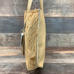 This stunning and versatile tote bag is a must-have for weekend getaways and extended shopping trips. Large enough to fit all your essentials and then some, this hair-on hide bag is soft-sided and lightweight, perfect to throw over your shoulder to keep your hands free. Its interior and exterior pockets and interior clip keep your belongings safe and secure. Each bag in the collection is finished with beauty, the leather handles that are tapered at the top for comfort, and a delightful leather tassel to complete the cowgirl chic look.