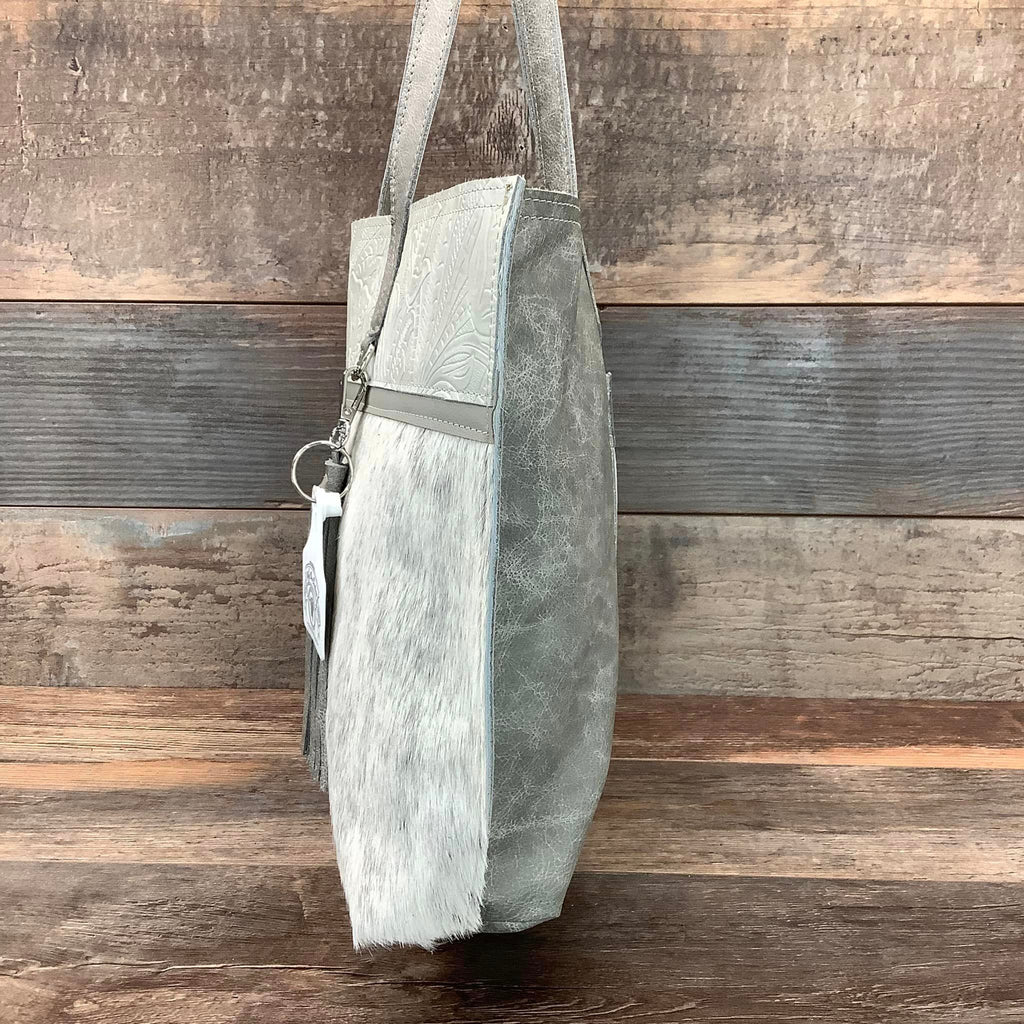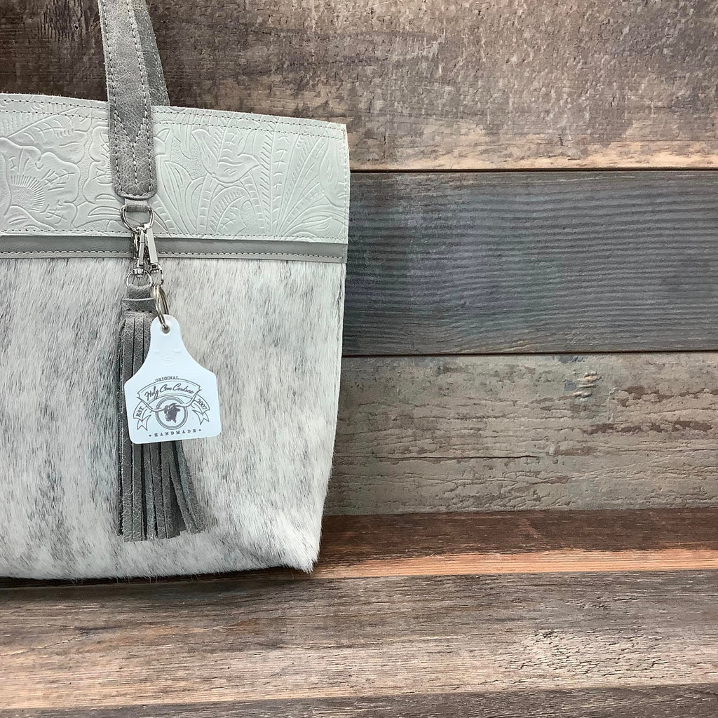 This stunning and versatile tote bag is a must-have for weekend getaways and extended shopping trips. Large enough to fit all your essentials and then some, this hair-on hide bag is soft-sided and lightweight, perfect to throw over your shoulder to keep your hands free. Its interior and exterior pockets and interior clip keep your belongings safe and secure. Each bag in the collection is finished with beauty, the leather handles that are tapered at the top for comfort, and a delightful leather tassel to complete the cowgirl chic look.