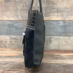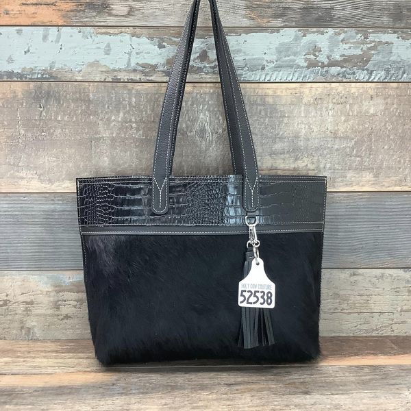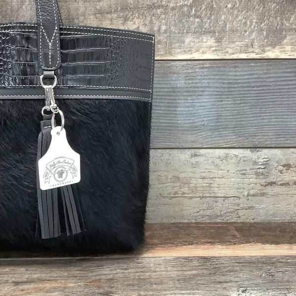 This stunning and versatile tote bag is a must-have for weekend getaways and extended shopping trips. Large enough to fit all your essentials and then some, this hair-on hide bag is soft-sided and lightweight, perfect to throw over your shoulder to keep your hands free. Its interior and exterior pockets and interior clip keep your belongings safe and secure. Each bag in the collection is finished with beauty, the leather handles that are tapered at the top for comfort, and a delightful leather tassel to complete the cowgirl chic look.