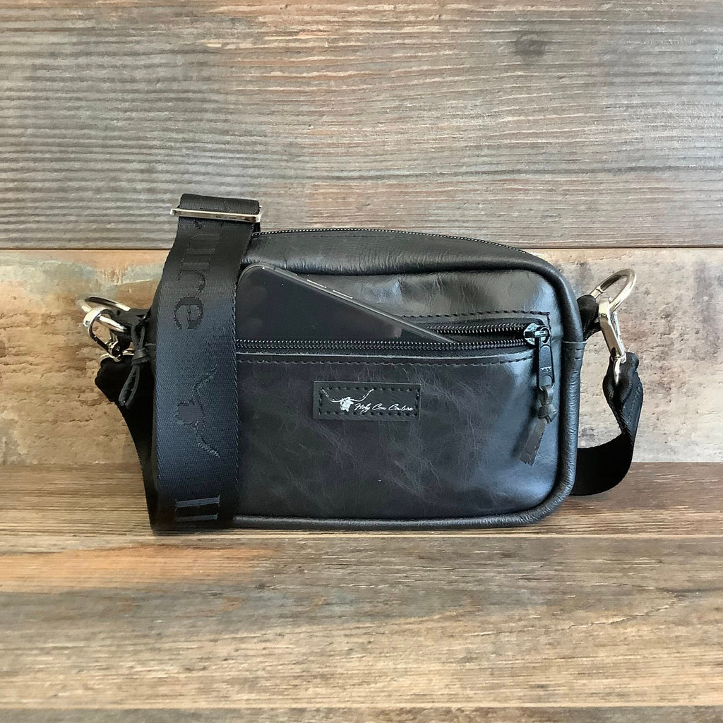 The Western Bum Bag!  With a compact design The Western Bum Bag has the flexibility to be worn as crossbody, on the waist or slung over your shoulder!  Great to be used as a daily carry for all of your daily essentials from your Unisex Wallet to your smart phone.  The Western Bum Bag comes with HCC's signature sporty web strap that is adjustable from lengths 34'' to 51".